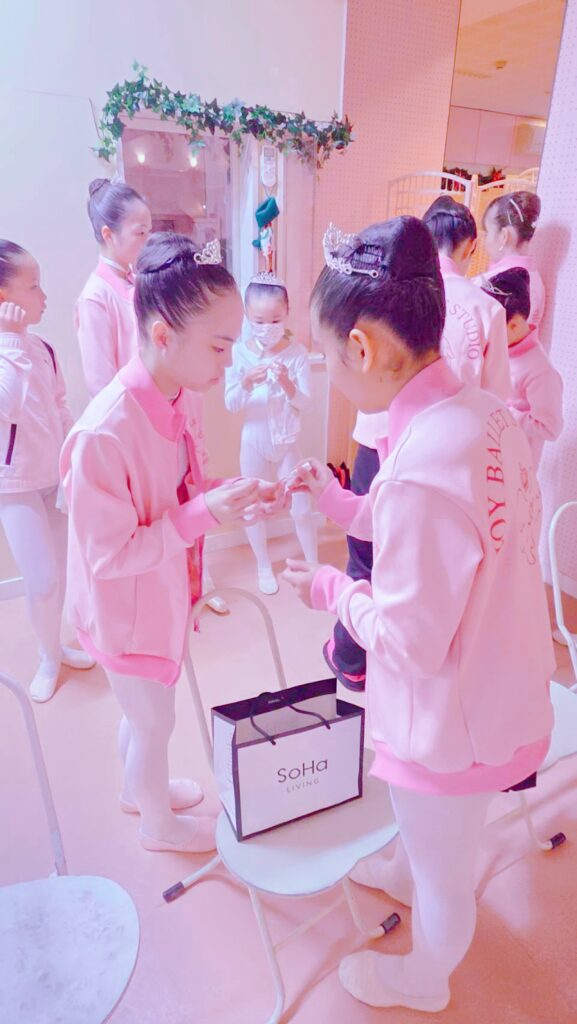 JOYバレエらしく、上のクラスの子が、下のクラスの子の面倒をしっかりと見てくれました。